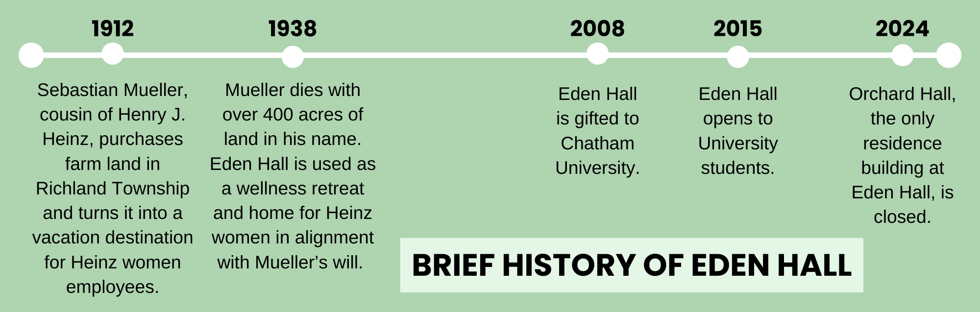 Chatham University’s Board of Trustees Chair Kent McElhattan sent out an email on March 10 to the Chatham community providing updates from the most recent Board of Trustees meeting. Included in that email was an update on the Board’s position for the future of Chatham’s 388-acre Eden Hall campus in Gibsonia.