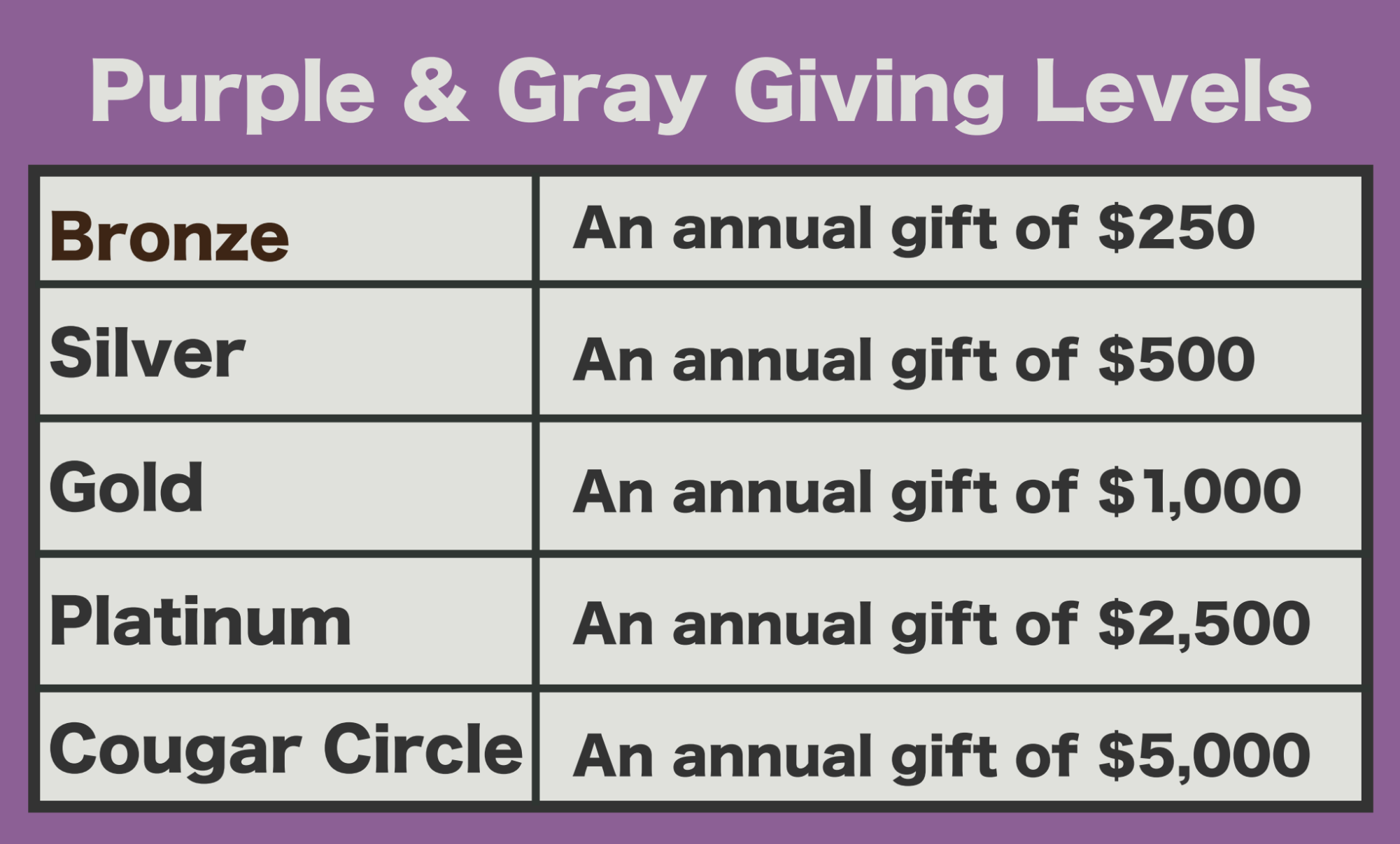 The Purple & Gray Club will raise funds for student-athlete programs with donations from alumni, parents and supporters.