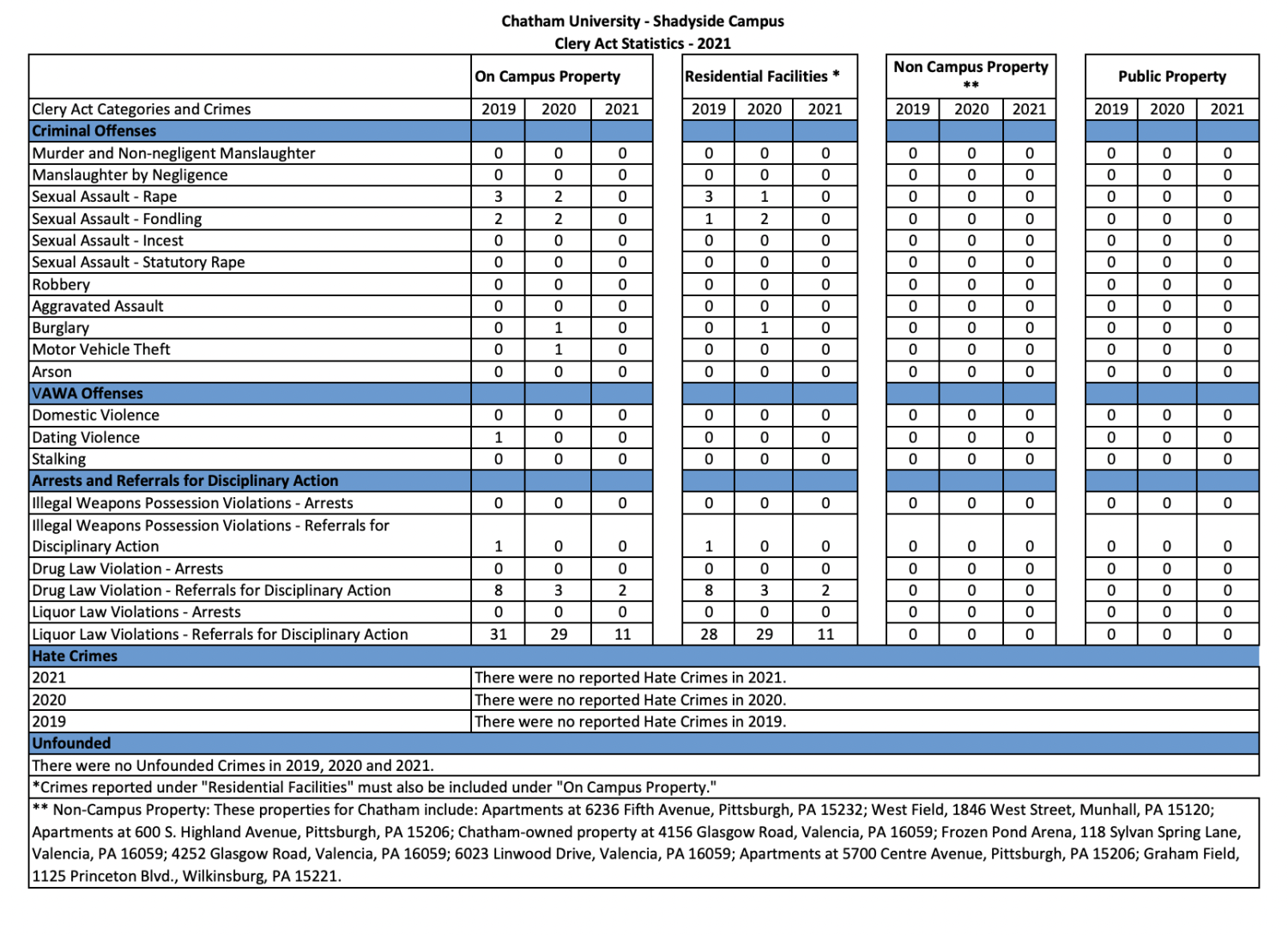 The report is made public, so any person can access the report through the Chatham website. Additionally, any reports that happened in the jurisdiction of Chatham’s security department that are reported to the campus police can be found on file in the Public Safety Office.