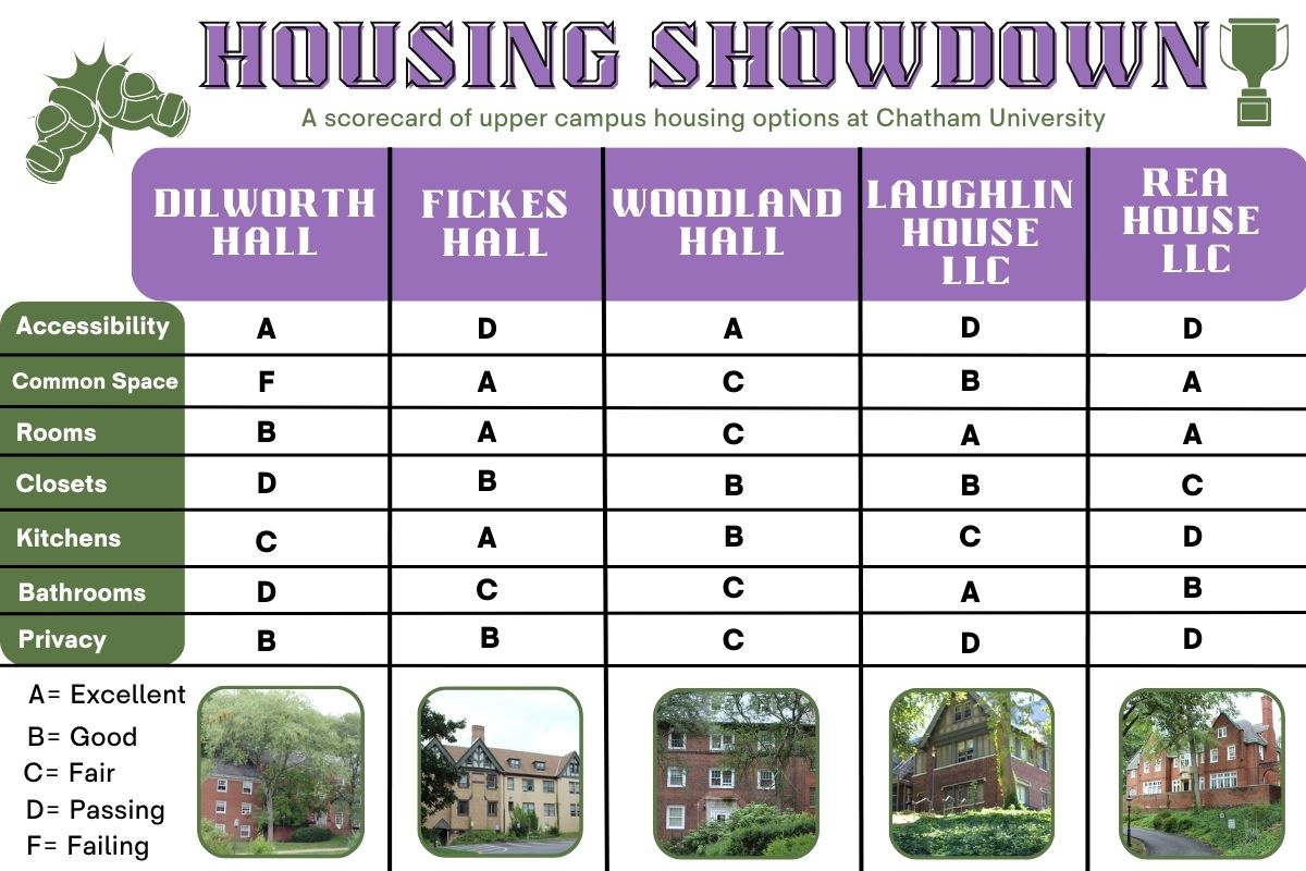 To assist students, the Communiqué compiled a scorecard based on student feedback (including the reporter’s experiences). For simplicity’s sake, each upper campus residence hall was ranked on criteria believed to be most important to a Chatham student. The apartments were not included in this piece.